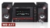 2.1 Power output:25W+10W×2(RMS) 4 inch subwoofer 3 inch mediant 2 inch high pitch Can connect PC VCD CD DVD Any audio output device can be used Karaoke output FM/AM LCD display USB/SD/MMC/MS Support CD MP3 Format Infrared remote